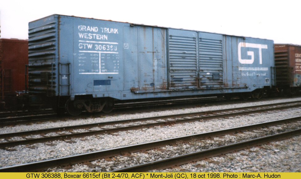 - GTW 306388 60' Auto Parts Boxcar Mont-Joli, QC. October 18, 1998 Marc-A. Hudon