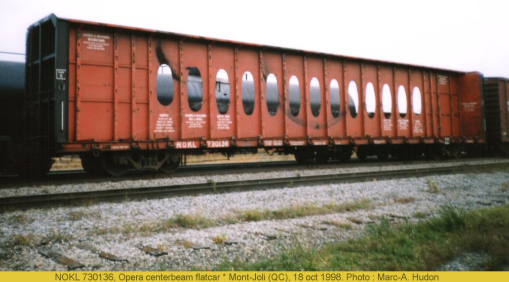 - NOKL 730136 Centre-beam Bulkhead Flatcar Mont-Joli, QC. October 18, 1998 Marc-A. Hudon