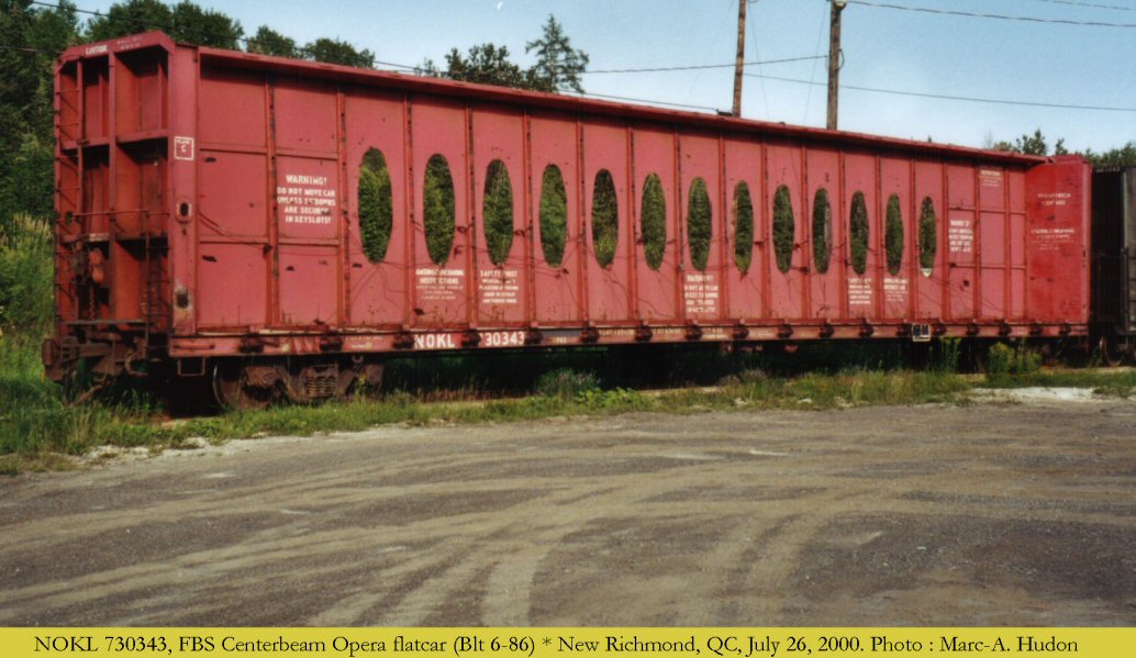 - NOKL 730343 Centre-beam Bulkhead Flatcar New Richmond, QC. July 26, 2000 Marc-A. Hudon