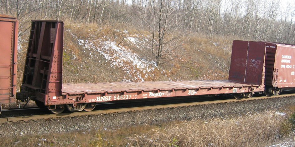 - BNSF 545337 Bulkhead Flatcar Scotch Block, ON. November 26, 2004 David Graham