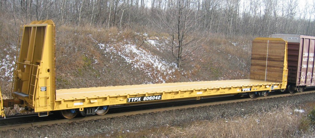 - QTTX 130775 Depressed Centre Flat Car Scotch Block, ON. November 27, 2004 David Graham
